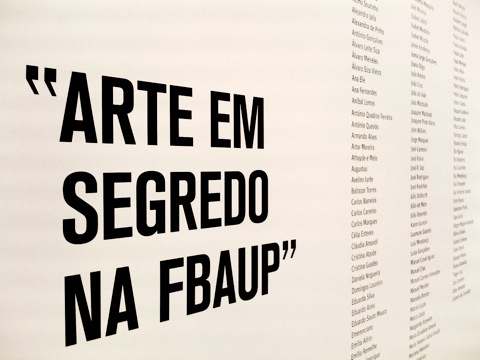 Artists, architects, designers, between ex-students, present faculty and former faculty of the FBAUP - University of Porto College of Fine Arts participated with their artworks: Albuquerque Mendes, Alcino Soutinho, Álvaro Leite Siza, Álvaro Siza Vieira, Ana Fernandes, Aníbal Lemos, António Quadros Ferreira, Carlos Carreiro,  Eduardo Souto Moura, Emerenciano, Francisco Laranjo, Gerardo Burmester, Humberto Mesquita, Isabel Cabral, Isabel Monteiro, Jaime Azinheira, João Machado, José Rodrigues, Júlio de Matos, Júlio Resende, Manuel Casal Aguiar, Manuel Correia Fernandes, Màrio Bismarck, Nadir Afonso, Paula Soares, Rodrigo Cabral, Rui Coutinho, Rui Pimentel, Sobral Centeno, Teresa Almeida, Zulmiro de Carvalho are some of the 128 artists who joined the project "Secret Art".